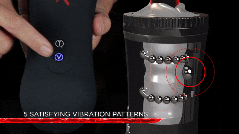 Механизм полностью скрыт внутри и имеет 2 металлических кольца вокруг мягкого и эластичного рукава, каждое из которых имеет ряд бусинок для чувственного массажа. Мощный перезаряжаемый мотор обеспечивает производительность профессионального уровня с 2 уровнями поступательных движений и 5 захватывающими режимами вибрации!